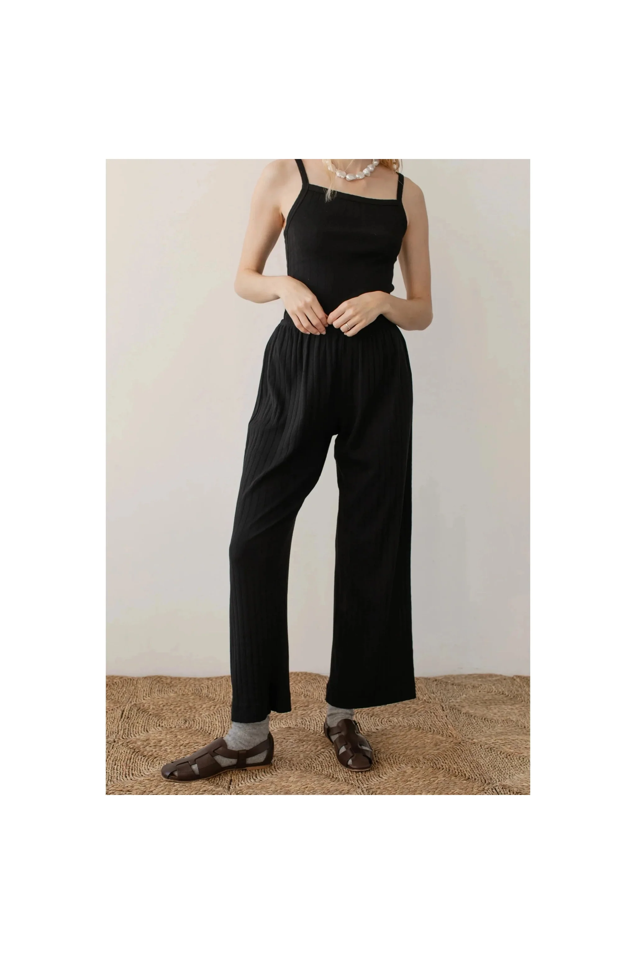 The Pointelle Simple Crop Pant is crafted with 100% Organic Cotton, featuring a cropped fit, wide leg and elastic waist.