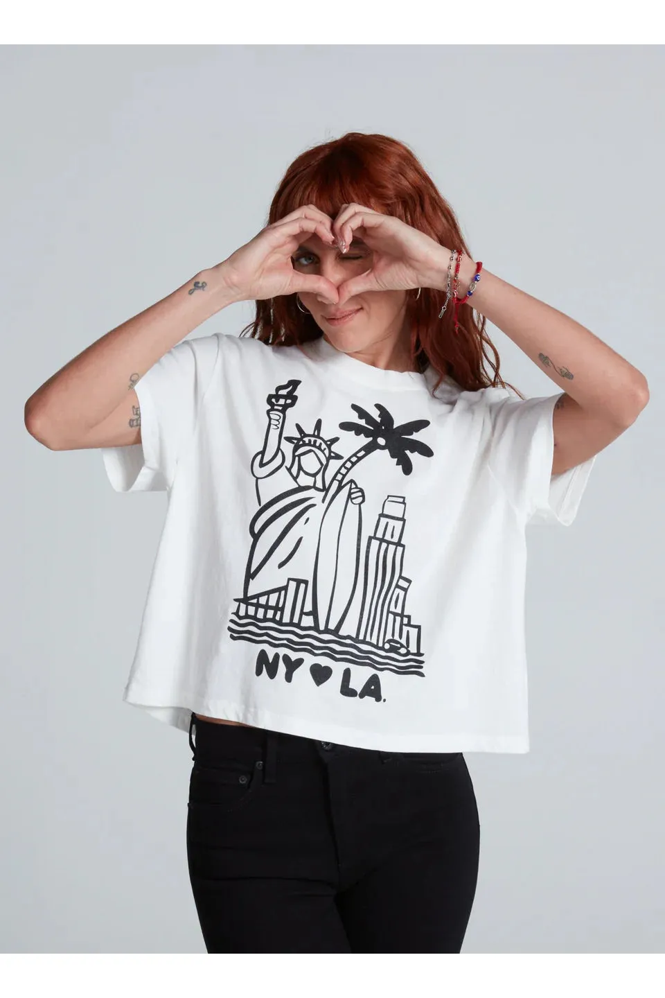 The Shrunken Boy Tee is a cropped, close-to-the-body essential designed with a classic crew neckline and a refined, shrunken fit. Cut from soft American knit cotton, this tee offers a clean structure with a broken-in feel, making it easy to wear on its own or layered. A timeless shape that pairs effortlessly with high-rise denim.