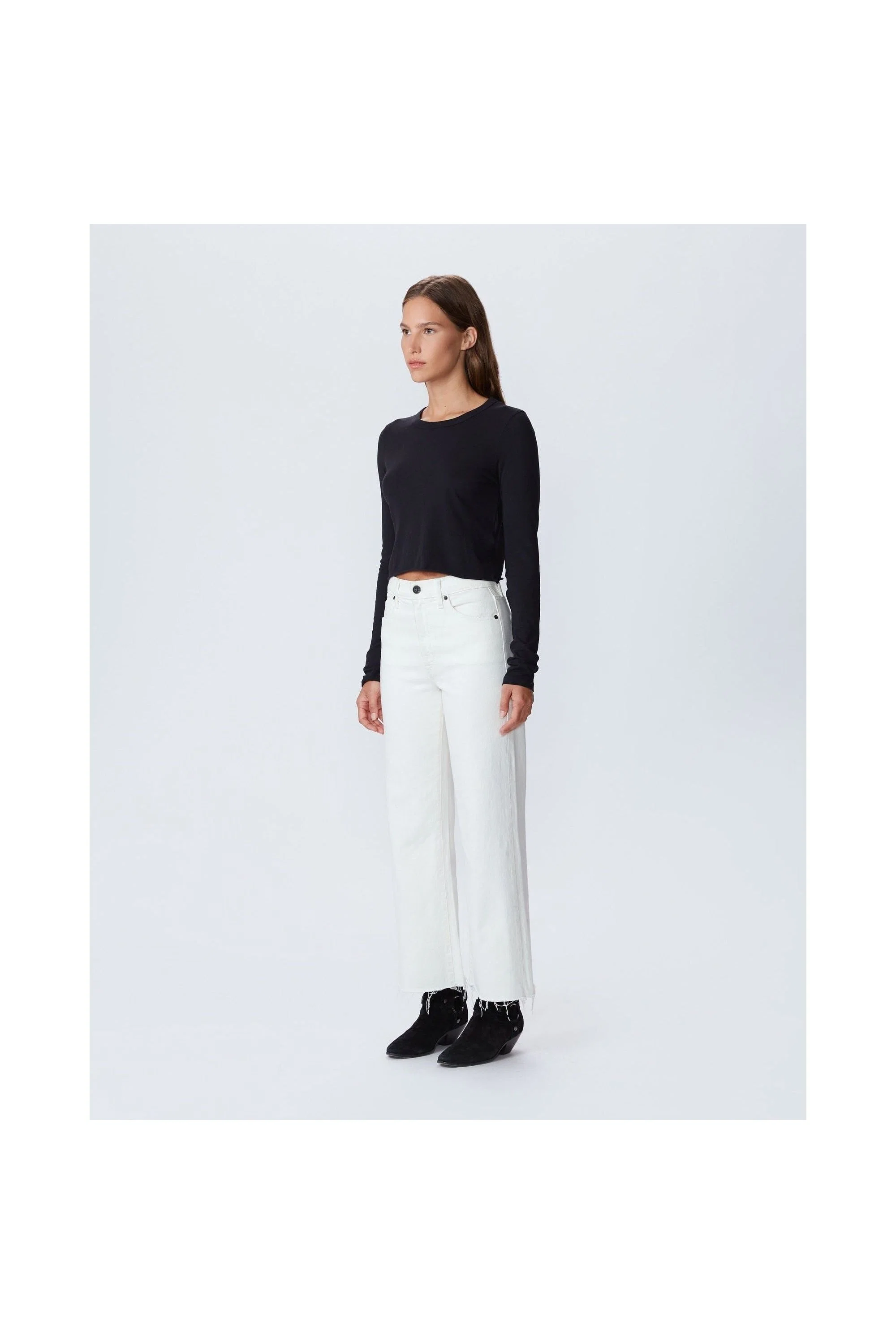 Grace Crop is a signature style designed to elongate the leg with a high-rise waist and a playful wide-leg silhouette featured in a shorter inseam.